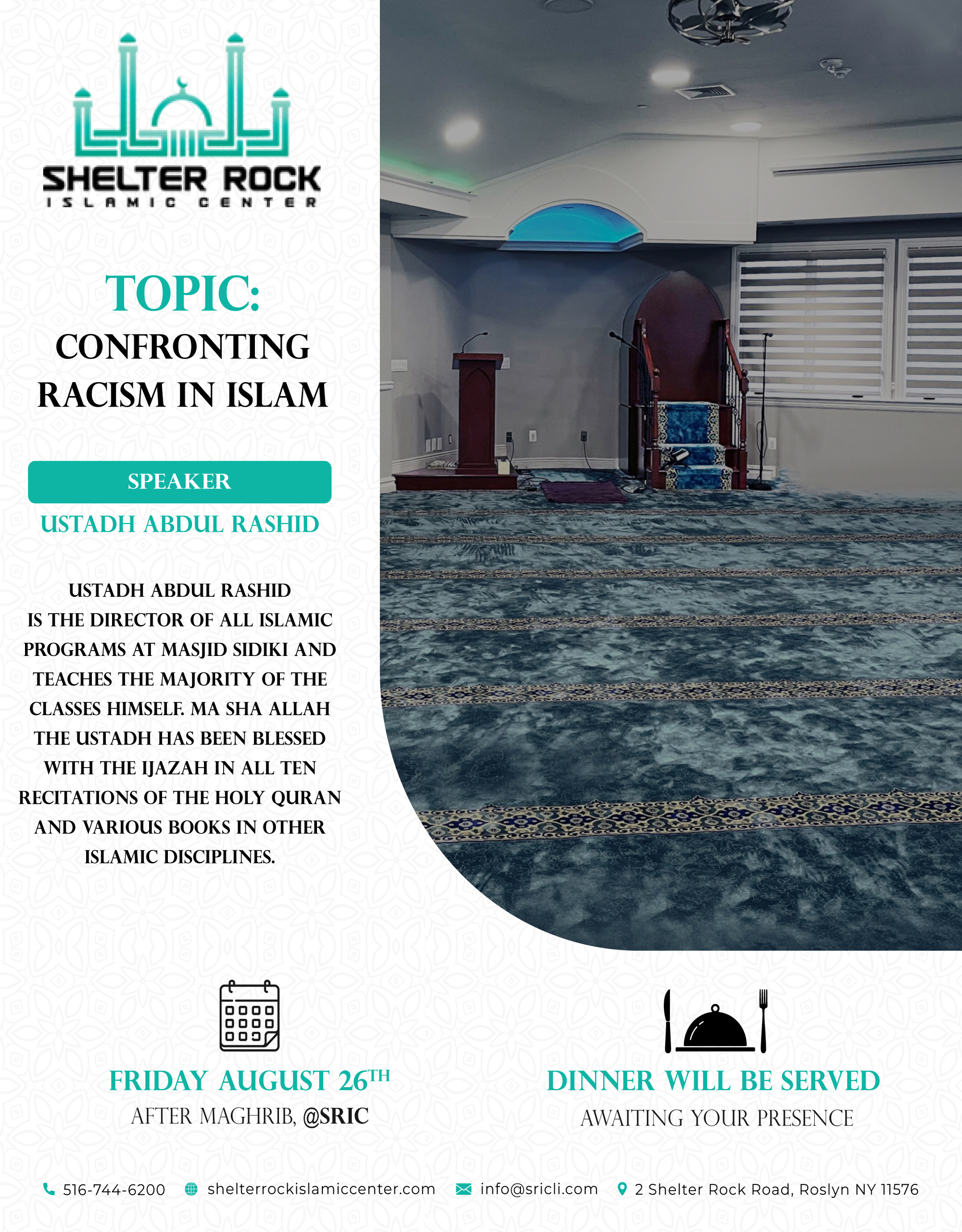Shelter Rock Islamic Center warmly invites you to an evening of inspiration and giving.📅 Sunday, October 19 | 6 PM